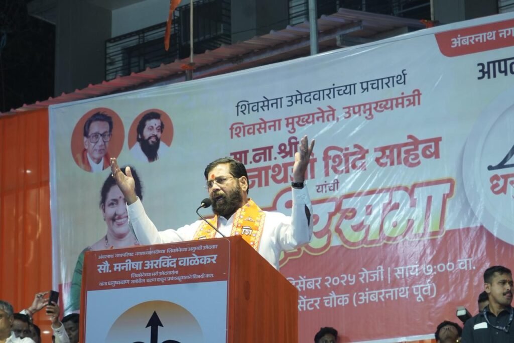 अंबरनाथ : अंबरनाथ नगरपरिषद निवडणुकीत शिवसेनेचाच भगवा फडकणार असून शहरात पुन्हा एकदा विकासाची घोडदौड सुरू राहील, असा ठाम विश्वास उपमुख्यमंत्री एकनाथ शिंदे यांनी व्यक्त केला. अंबरनाथ येथे शिवसेनेच्या नगराध्यक्ष पदाच्या उमेदवार मनिषा वाळेकर यांच्या सह अन्य उमेदवारांच्या प्रचारसभेत ते बोलत होते.