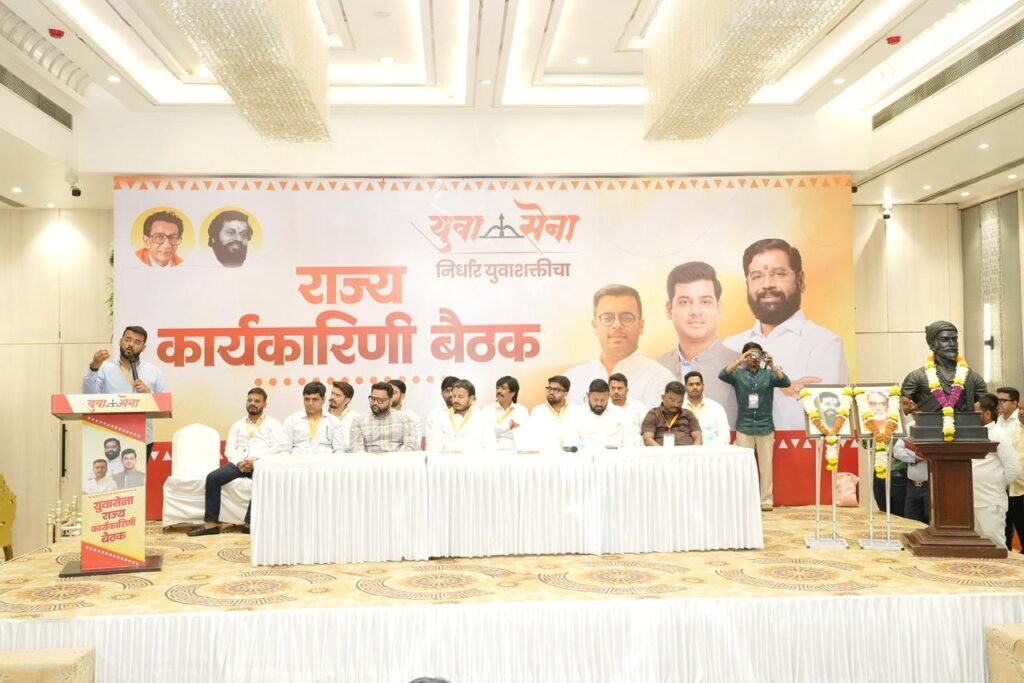 ठाणे, १५ : शिवसेनेचे मुख्यनेते तथा उपमुख्यमंत्री मा. ना. एकनाथ शिंदे साहेब आणि लोकप्रिय खासदार श्रीकांत शिंदे यांच्या मार्गदर्शनाखाली युवासेना कार्याध्यक्ष पुर्वेश सरनाईक यांच्या नेतृत्वात युवासेना राज्य कार्यकारिणीची बैठक मोठ्या उत्साहात पार पडली. या बैठकीत संपूर्ण राज्यभरातून युवासेना कार्यकारिणी सदस्य, जिल्हा अध्यक्ष, लोकसभा अध्यक्ष, समन्वयक, निरीक्षक, विधानसभा अध्यक्ष, तालुका अध्यक्ष, शहर अध्यक्ष, युवासेना पदाधिकारी, युवतीसेना पदाधिकारी व युवासैनिक मोठ्या संख्येने उपस्थित होते.